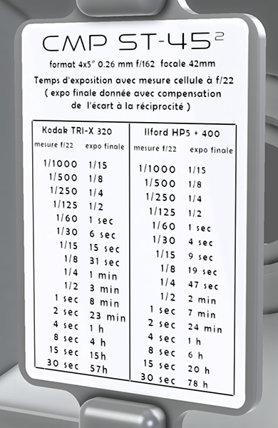 Sténopé CMP ST-45² - format 4x5 inch, focale 42mm, diaphragme f/162