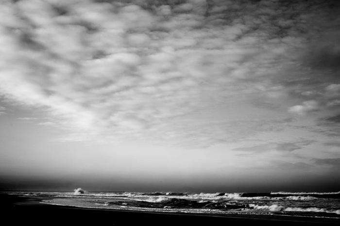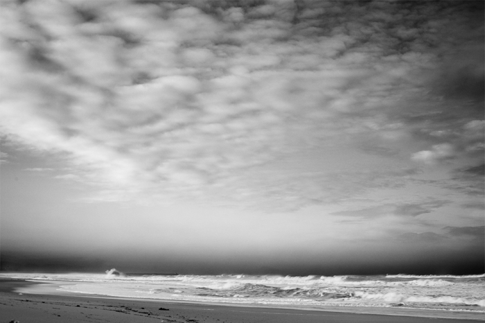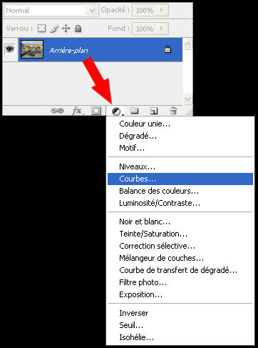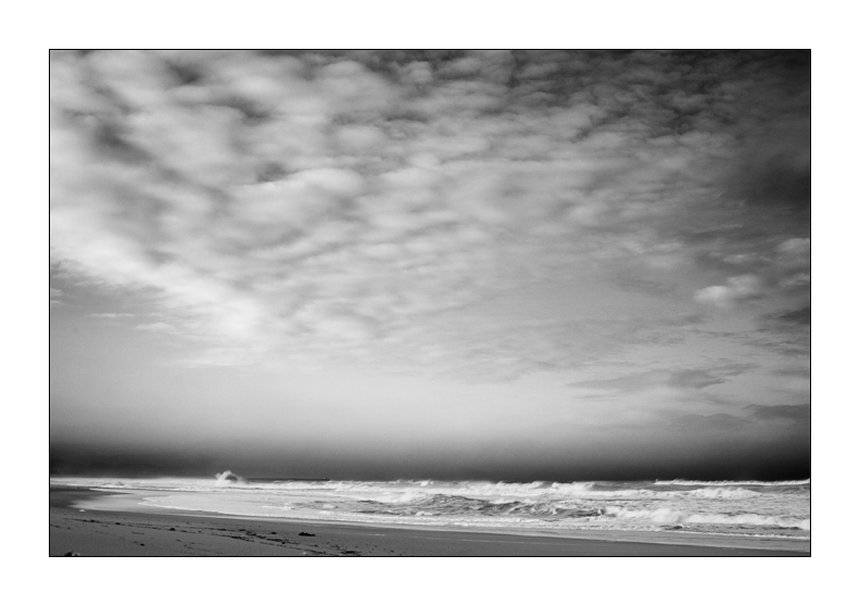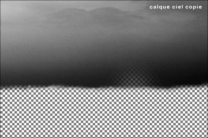 Il existe des dizaines de méthodes pour convertir en niveau de gris des fichiers issus de capteurs numériques couleur, des plug-ins spécifiques et des méthodes complexes. En de paysage j'opte pour la simplicité: une simple conversion en niveaux de gris et un travail approfondi sur les contrastes à l'aide de la fonction courbes. La création de calques pour séparer les éléments qui nécessitent des corrections très différentes est une solution simple qui demande un peu de temps mais le résultat est convaincant. La prise de vue sur laquelle nous allons travailler est tout a fait banale en couleur et mériterait à peine de figurer dans un album photo de vacances. Le principe est simple: nous allons travailler séparement sur deux éléments, d'une part le ciel et d'autre part la plage et les vagues. Pour ce faire nous dupliquons le calque de fond et le nouveau calque nous permettra d'agir sur le ciel ( la partie basse contenant la terre et la mer sera effacée à la gomme ). Il est important de travailler en 16 bits car les courbes appliquées en noir et blanc sont souvent assez prononcées et la qualité des dégradés sera amoindrie si vous êtes en 8 bits ( formation de dégradés " en escalier "